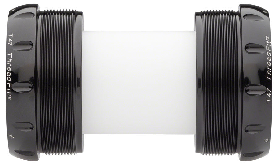 Chris King ThreadFit T47 30x Bottom Bracket with Fit Kit 5 - T47 For 30mm Spindles Black. The Chris King ThreadFit T47 30x Bottom Bracket provides the security and reliability of a threaded bottom bracket with the stiffness and power transfer gains of a PressFit 30 bottom bracket shell.ThreadFit T47 30x fits 68mm and 73mm shell widths with 30mm spindles