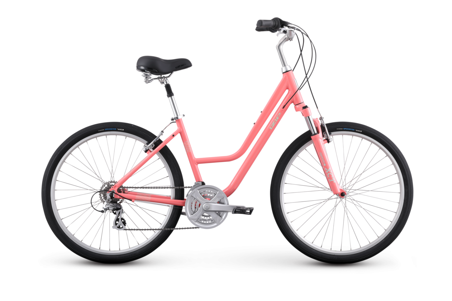 When it comes to riding bikes, the IZIP Zest is as comfy as it gets. Whether cruising the boardwalk, the campground or the bike path, this comfort bike is the definition of easy riding. The Zest puts the rider in an upright yet laid-back position for maximum comfort on the bike. Large 27.5 × 1.95 tires and Suntour front suspension fork allow you to roll over the bumps with ease while keeping your speed up. Pedals with no-slip grip add to the all-day comfort, while classy graphics and reflective details add a refined look. Venture into a new level of comfort on the bike with the Zest Step Thru.