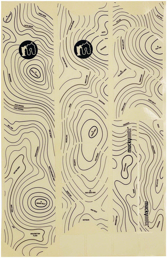 Muckynutz Contours Frame Protection - 17-Piece Black Gloss. Muckynutz Frame Skinz- protects your bikes vulnerable areas from chips and scratches. Designs are printed on a transparent background blending perfectly into your bikes natural color scheme. The seventeen patches can be used independently or in harmony letting you decide what areas to protect.Universal fitting: suitable for alloy and carbon frames