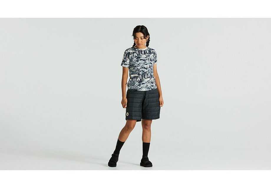 Packable, lightweight insulated unisex shorts. Lightly padded with synthetic insulation and an outer fabric in recycled polyamide. Supports the Specialized/Fjällräven Thermo Anorak and is optimized for long bike rides as a reinforcement layer for men and women. Adjustable, elastic cam-lock waistband. Unisex fit. Part of the Specialized/Fjällräven series for urban rides and bikepacking adventures.