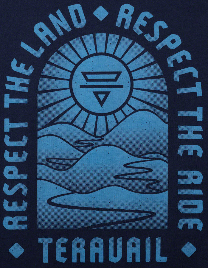 Teravail Landmark T-Shirt - Navy Unisex Small. This cool and comfortable t-shirt is a reminder of what’s out there — and to treat the places you ride with respect. The fit and feel are perfect for summertime rides or just hanging out at home.Bella Canvas ring-spun cotton